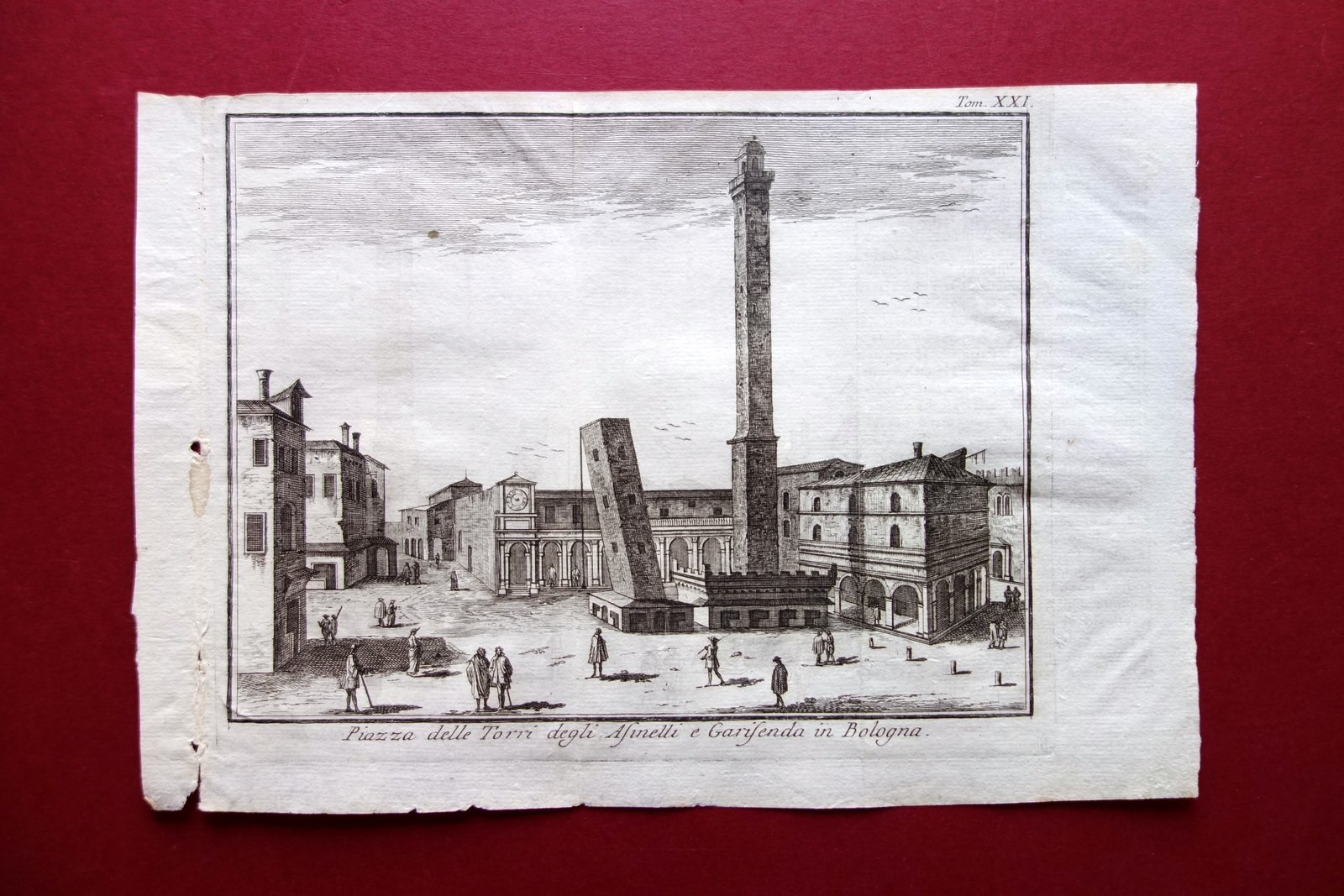 Veduta Piazza delle Torri degli Asinelli e Garisenda Bologna Salmon 1757