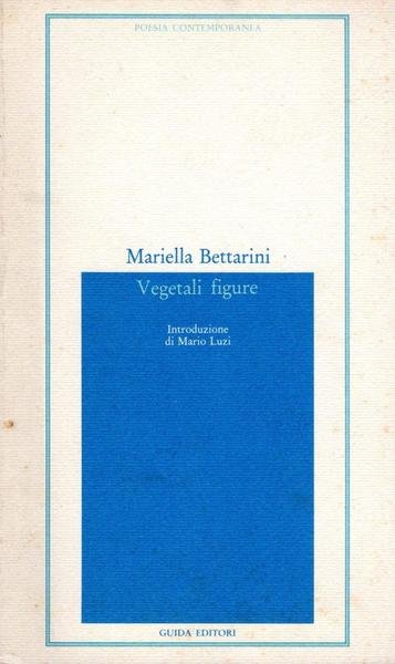 Vegetali figure, prima edizione luglio 1983, pp. 50, formato 12,5 x 21.<BR>Copertina morbida di colore bianco e blu, con titoli in blu al piatto anteriore e in nero sul dorso. Introduzione di Mario Luzi. In prima pagina presente firma dell'autrice. <BR>Ottime condizioni.