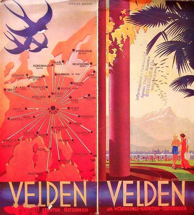 105x230 mm chiuso, 420x230 mm aperto Condizioni : USATO - Stato : Buono, ordinari segni d'uso e del tempo. Altre note : In copertina illustrazione di Berann, Innsbruck. Sul retro cartina dell'Europa dell'atelier Berann.