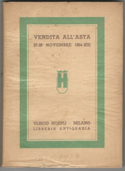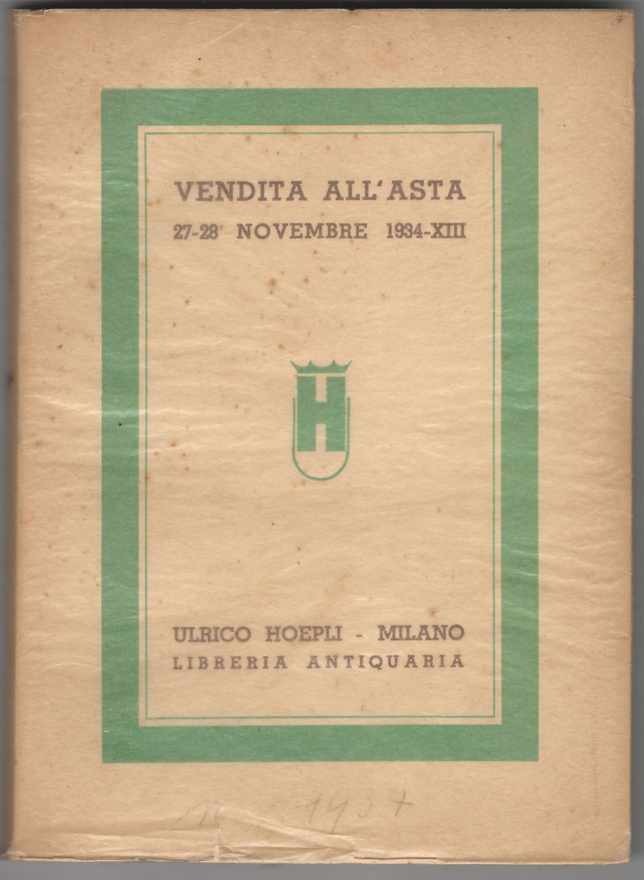 Vendita all'asta 27-28 novembre 1934. Libri antichi e moderni di letteratura, di storia e di arte. Curiosità e rarità - edizioni numerate - legature.