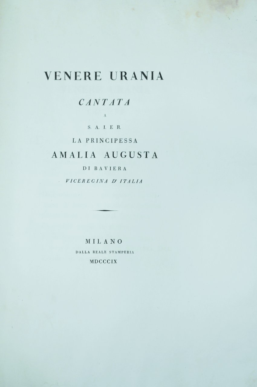 VENERE URANIA. - Cantata a S.A.I.E.R. la Principessa Amalia Augusta di Baviera Vice-Regina d'Italia.