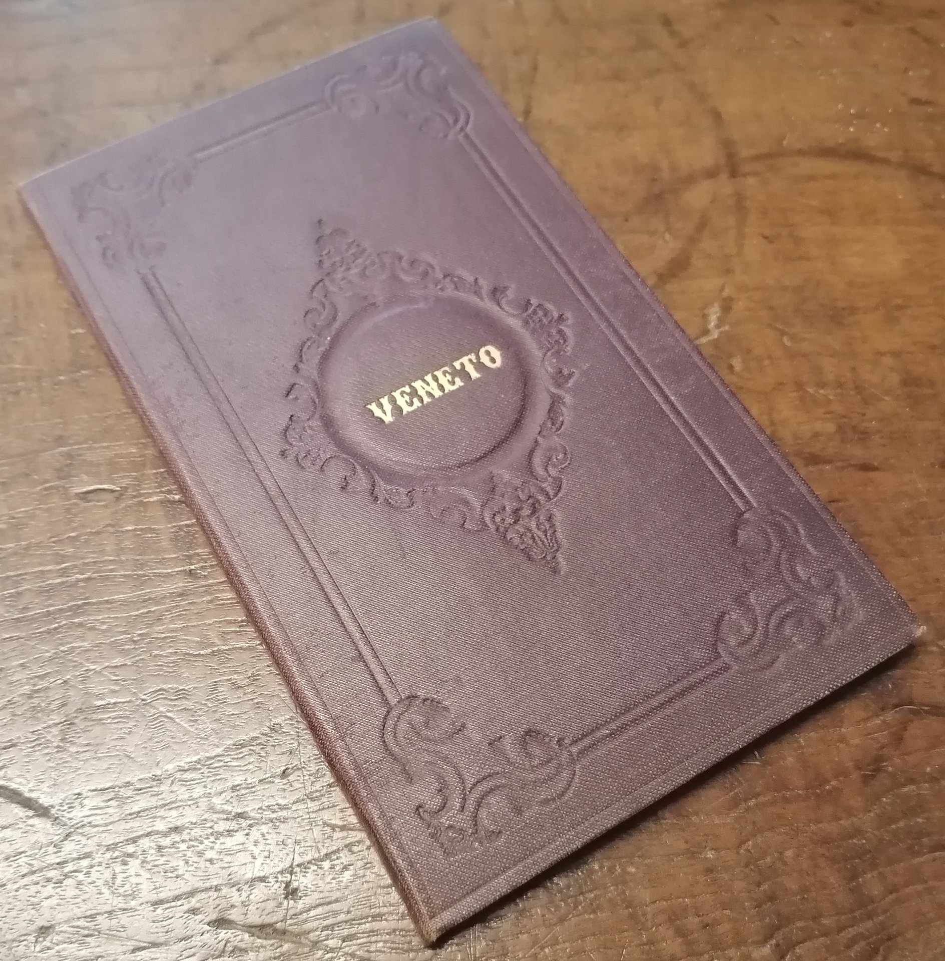 (Veneto - Cartografia ) Carta geografica del Veneto in litografia, scala 1 : 50.000, montata in origine su tela in 21 stacchi, ripiegata in custodia aperta in percallina vinaccia, al piatto anteriore titolo impresso in oro entro fregio e cornice a secco ornati e carta decorata al contropiatto, dimensioni aperta di cm 70,5 x 51. Esemplare ben conservato.