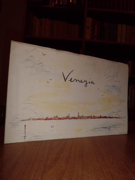 Pubblicato a cura dell' Ente Provinciale per il Turismo di Venezia. 14 acquerelli stampati su carta greve. I titoli: Piazza S. Marco, Isola di S. Giorgio, Regata Storica, Ponte delle Guglie, Riva degli Schiavoni, Zattere, Torcello, Tetti di Venezia, Pontedi Rialto, Basilica della Salute, S.S. Giovanni e Paolo, Venezia minore, Canal Grande, Festa del Redentore. In ottimo stato di conservazione.