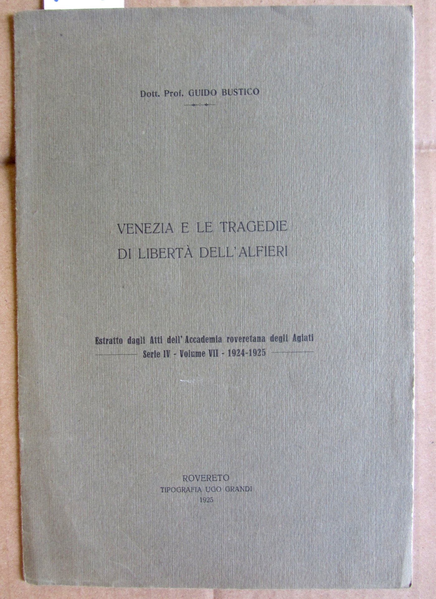 VENEZIA E LE TRAGEDIE DI LIBERTA' DELL'ALFIERI. Serie IV - Volume VII - 1924-1925.,