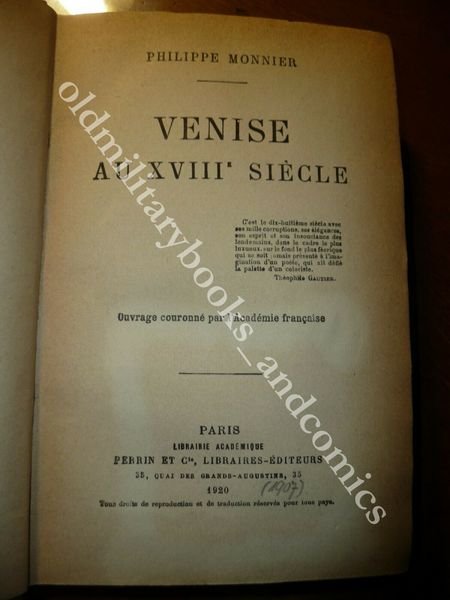 VENISE AU XVIII SIECLE PHILIPPE MONNIER 1920 IMPORTANTE EX LIBRIS