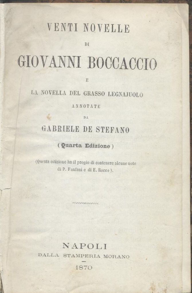 VENTI NOVELLE DI GIOVANNI BOCCACCIO grasso legnajuolo 1870 Morano libro antico