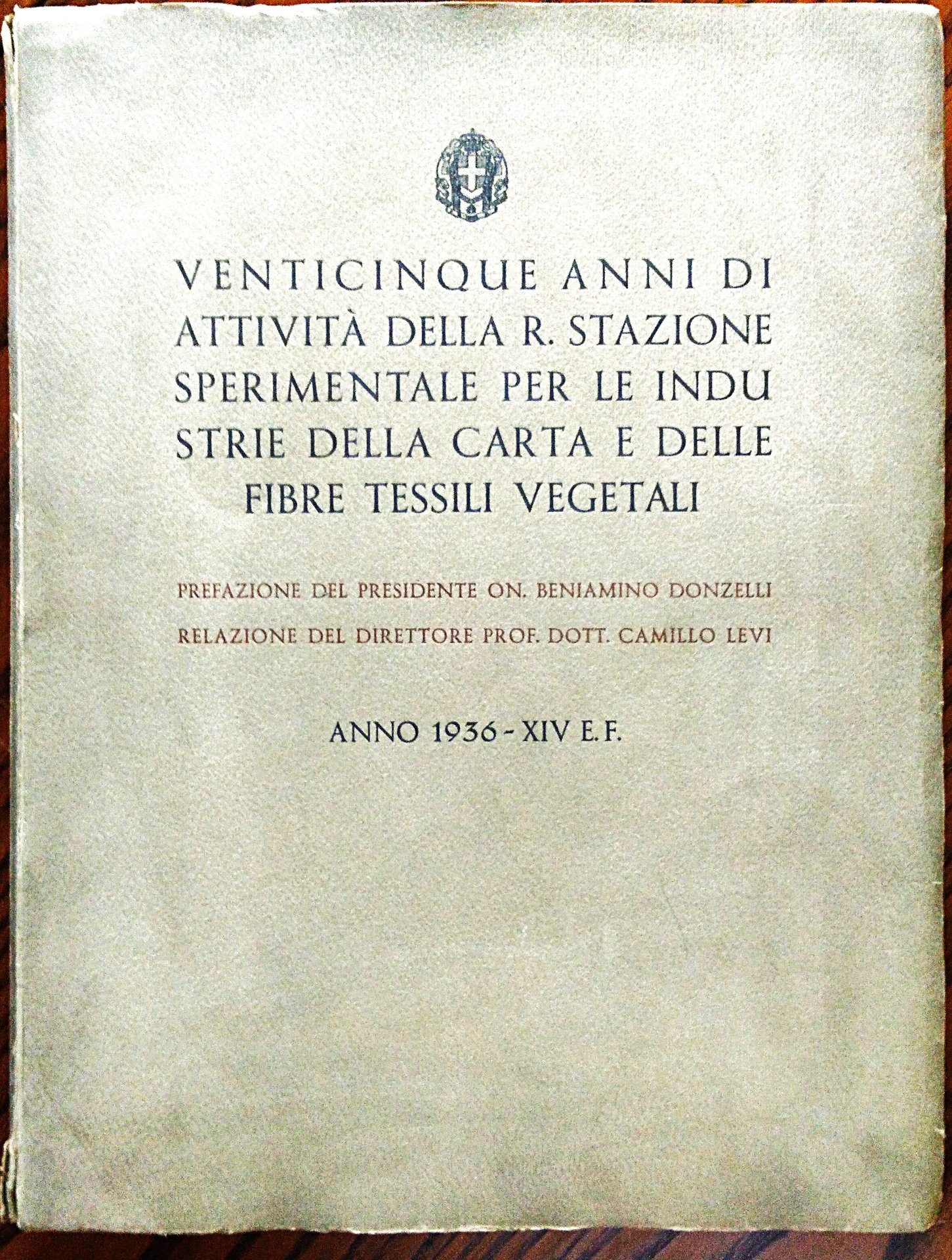 Venticinque anni di attività della Regia Stazione Sperimentale per industrie della carta e delle fibre tessili vegetali. Prefazione del Presidente Beniamino Donzelli, deputato al Parlamento - Relazione del direttore prof. dott. Camillo Levi.