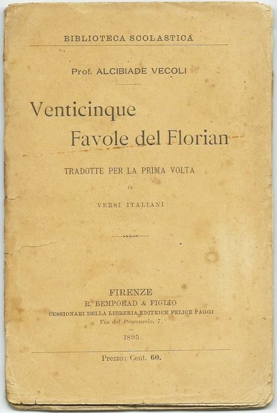 VENTICINQUE FAVOLE DEL FLORIAN - Venticinque Favole del Florian Tradotte per la prima volta in versi italiani Biblioteca Scolastica - Ed. Bemporad, 1895