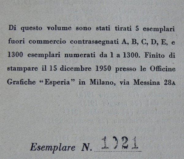 DISPONIBILITÀ GARANTITA AL 99%; SPEDIZIONE ENTRO 12 ORE DALL'ORDINE. PERFETTO. EDIZIONE A TIRATURA LIMITATA, STAMPATA IN 1300 COPIE. ESEMPLARE NUMERATO N. 1021