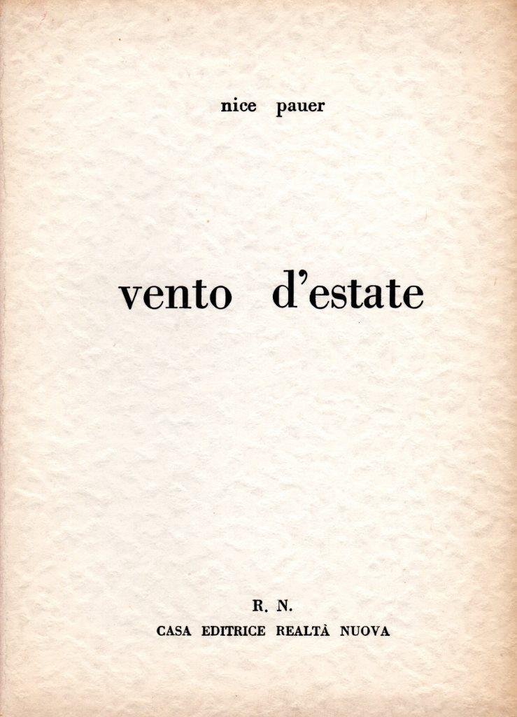 Vento d'estate, prima edizione ottobre 1961, pp. 50, formato 12 x 16,5.<BR>Copertina morbida di colore crema con titoli in nero al piatto anteriore e sul dorso. In prima pagina presente dedica dell'autore datata Pasqua 1966. <BR>Lieve ingiallimento ai piatti. Nel complesso condizioni molto buone.