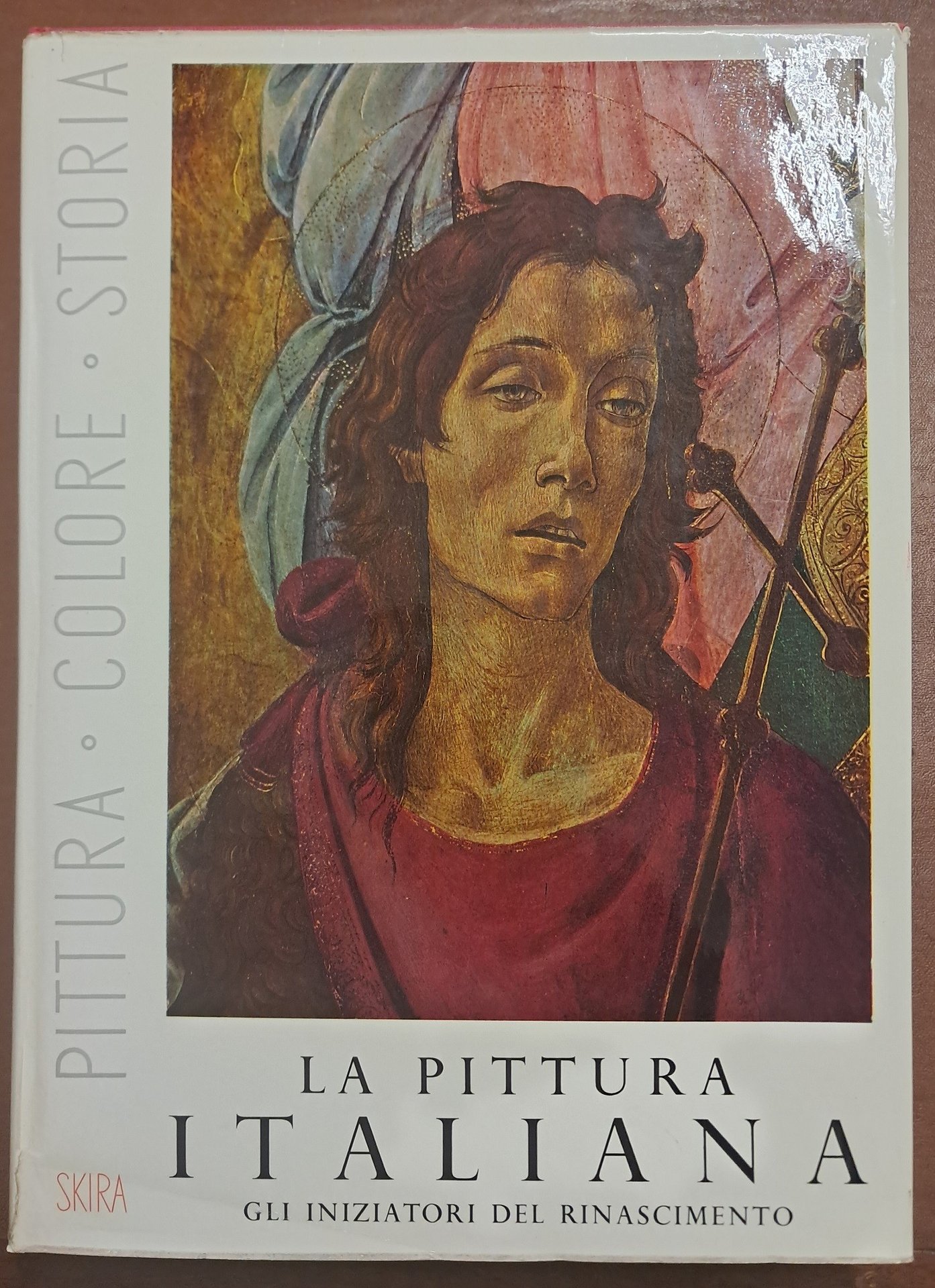 La pittura italiana. Primo volume. Gli iniziatori del Rinascimento, saggio critico di Lionello Venturi, commentari storici di Rosabianca Skira-Venturi tradotti da Nello Ponente, Albert Skira Editore, Ginevra 1956, pp. 209 di cui 4 ripiegate, ill. col. con ill. in carta applicate nel testo, cm 35, cart. ed. con titoli al dorso, marca ed. al piatto e sovraccoperta. Collana Pittura colore storia. Serie La pittura italiana, 1. Qualche strappetto e una piccola mancanza alla sovraccoperta, per il resto ben conservato.