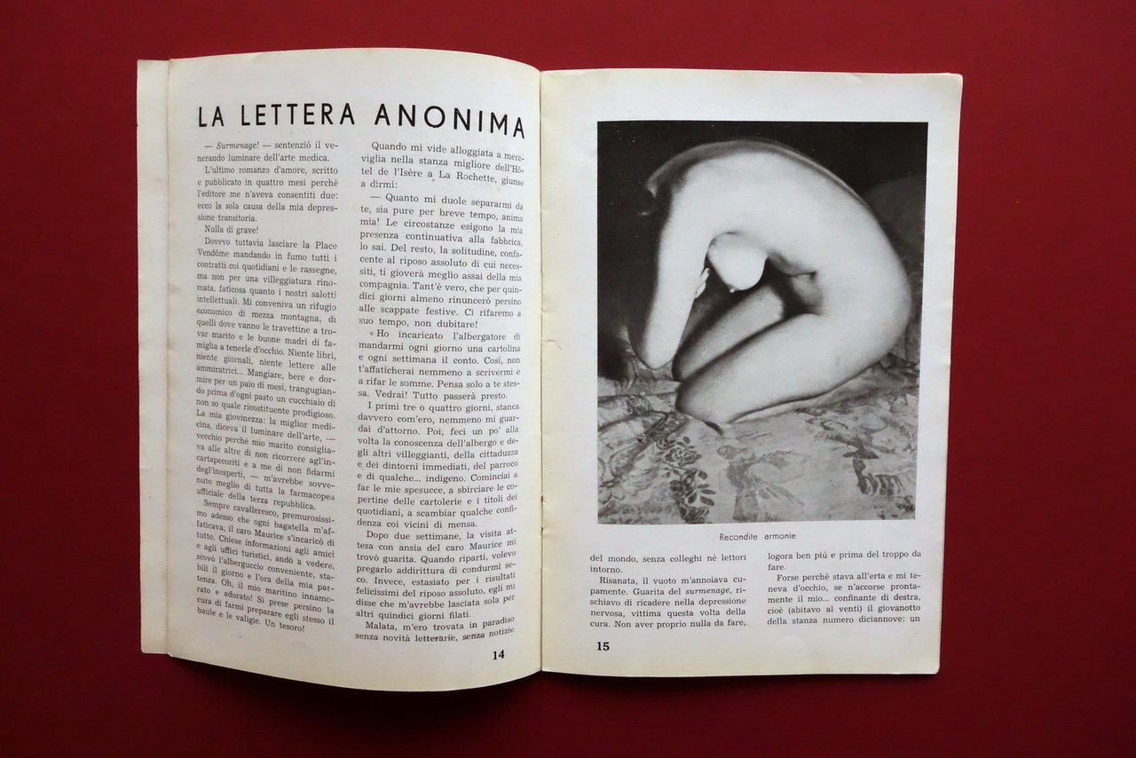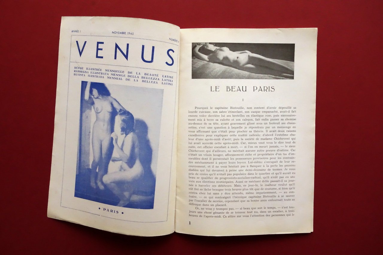 Rivista, Venus" rassegna illustrata mensile della bellezza latina anno I - numero 6 novembre 1945 Paris, 1945; cm 24x16,5; pp. 32 con numerose ill. fotografiche in b/n; brossura ed. Testo trilingue francese - italiano - spagnolo. Condizioni di conservazione Buone condizioni con leggere tracce d'uso, brossura con alcuni leggerissimi aloni e poche trascurabili bruniture. Interni complessivamente molto ben conservati. Numero completo. Testo trilingue italiano - francese - spagnolo. OPEB.5732 N "