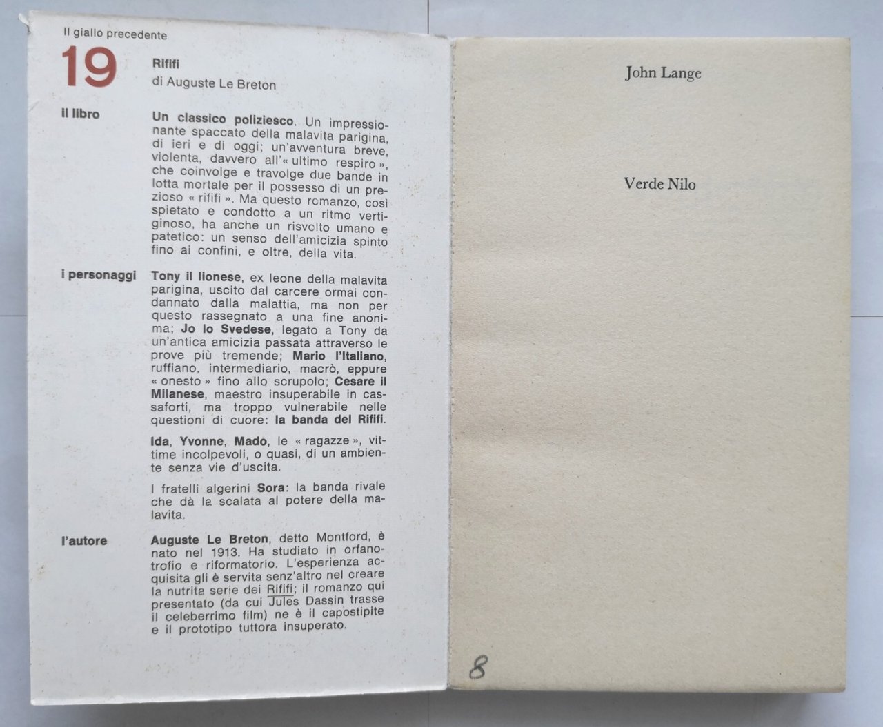VERDE NILO di John Lange. Collana "Gialli Garzanti".