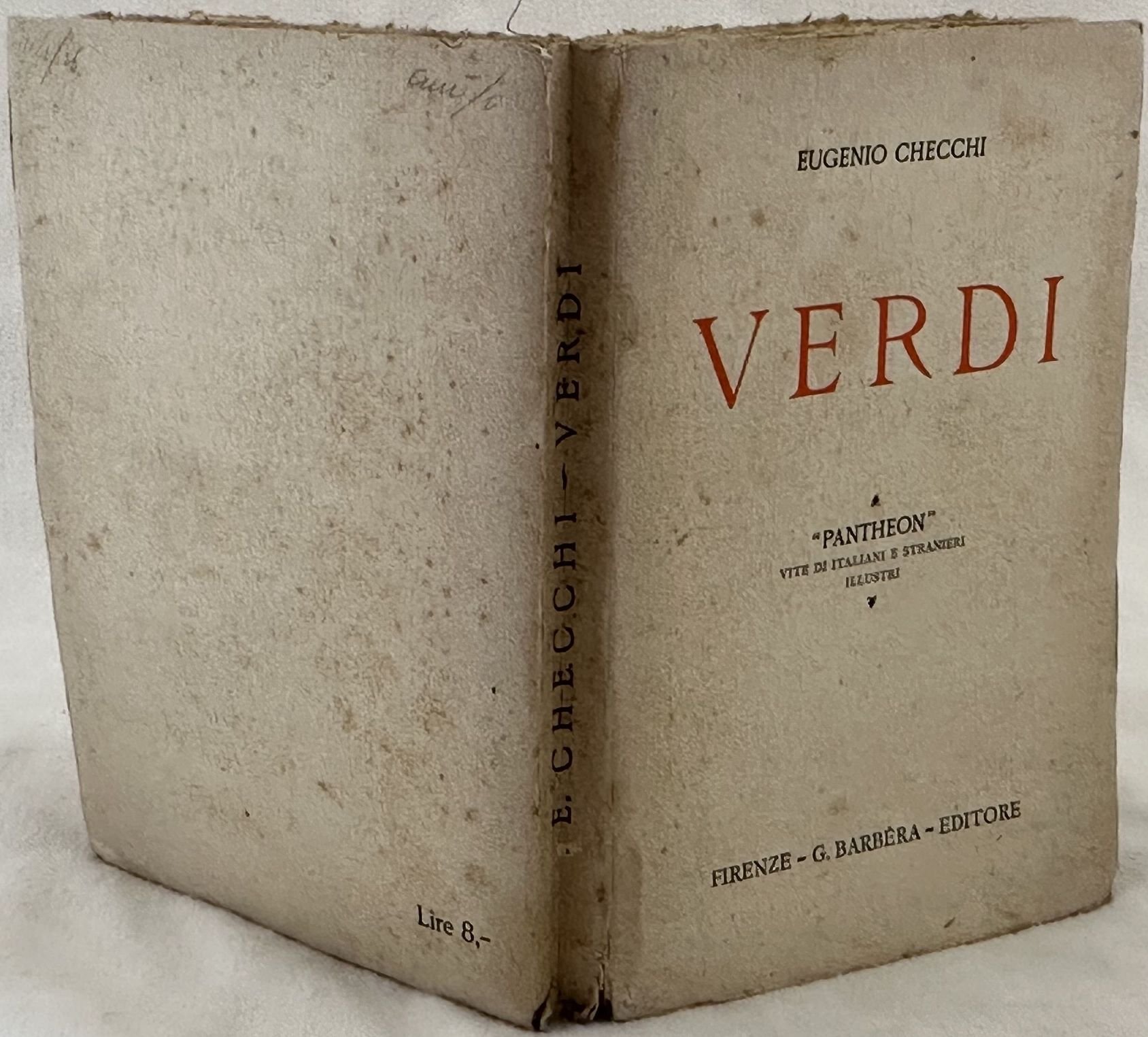 Edizione del 1926 di questo volume sulla vita di Verdi scritto da Eugenio Checchi. Alcune tavole all'interno. In buone condizioni. Copertina editoriale in buone condizioni generali con lievi usure ai margini e dorso. Legatura in buone condizioni. Pagine in buone condizioni con rare fioriture. In 16. Dim. 18,5x13 cm. Pp. X+244. Edition of 1926 of this volume about the life of Verdi written by Eugenio Checchi. Some plates inside. In good conditions. Editorial cover in good general conditions lightly worn in the extremities. Binding in good conditions. Inside pages are in good conditions with occasional foxing. In 16. Dim. 18,5x13 cm. Pp. X+244.