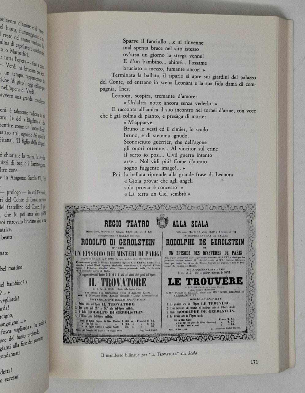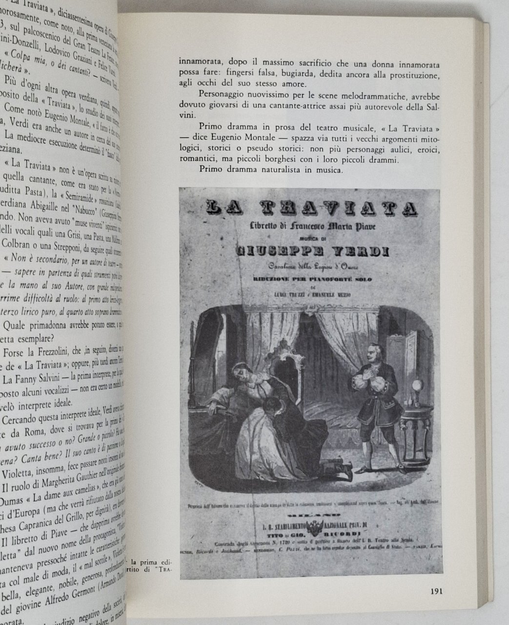 Finito di stampare nel giugno 1979. Formato: 18,5 x 25,5 cm circa. Pagine: 375 + [5]. Stato di conservazione: decisamente buono. privo di firme d'appartenenza, annotazioni, sottolineature o altri segni nel testo. Vista la compattezza della rilegatura e l'assenza di pieghe sul dorso, il volume sembrerebbe non essere mai stato aperto. Copertina editoriale flessibile illustrata. Con numerose immagini (locandine teatrali, libretti d'opera, interni di teatro, ritratti, .) in nero nel testo.