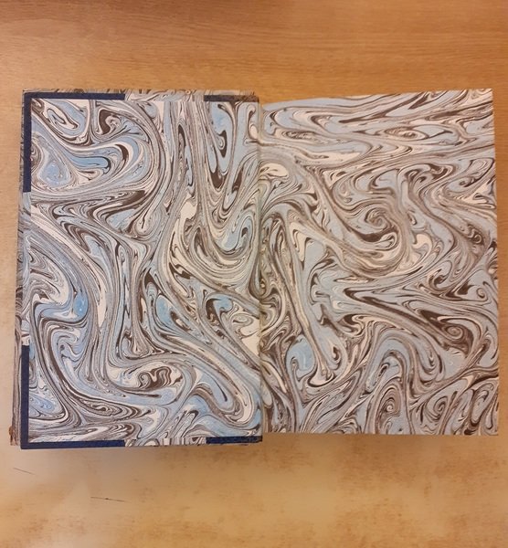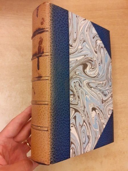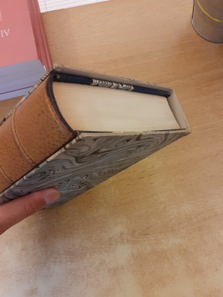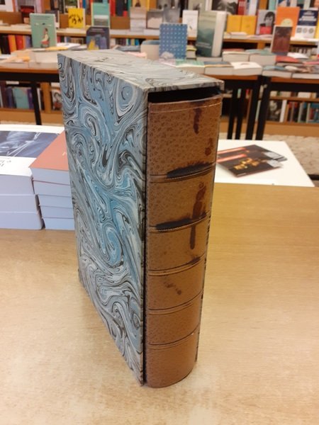 Rilegatura Rigoldi in pelle e carta marmorizzata con custodia.