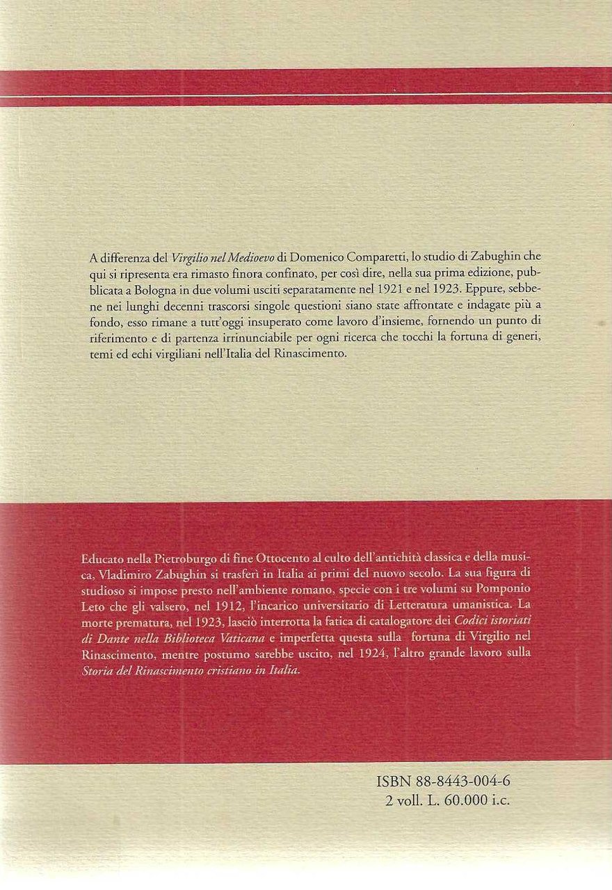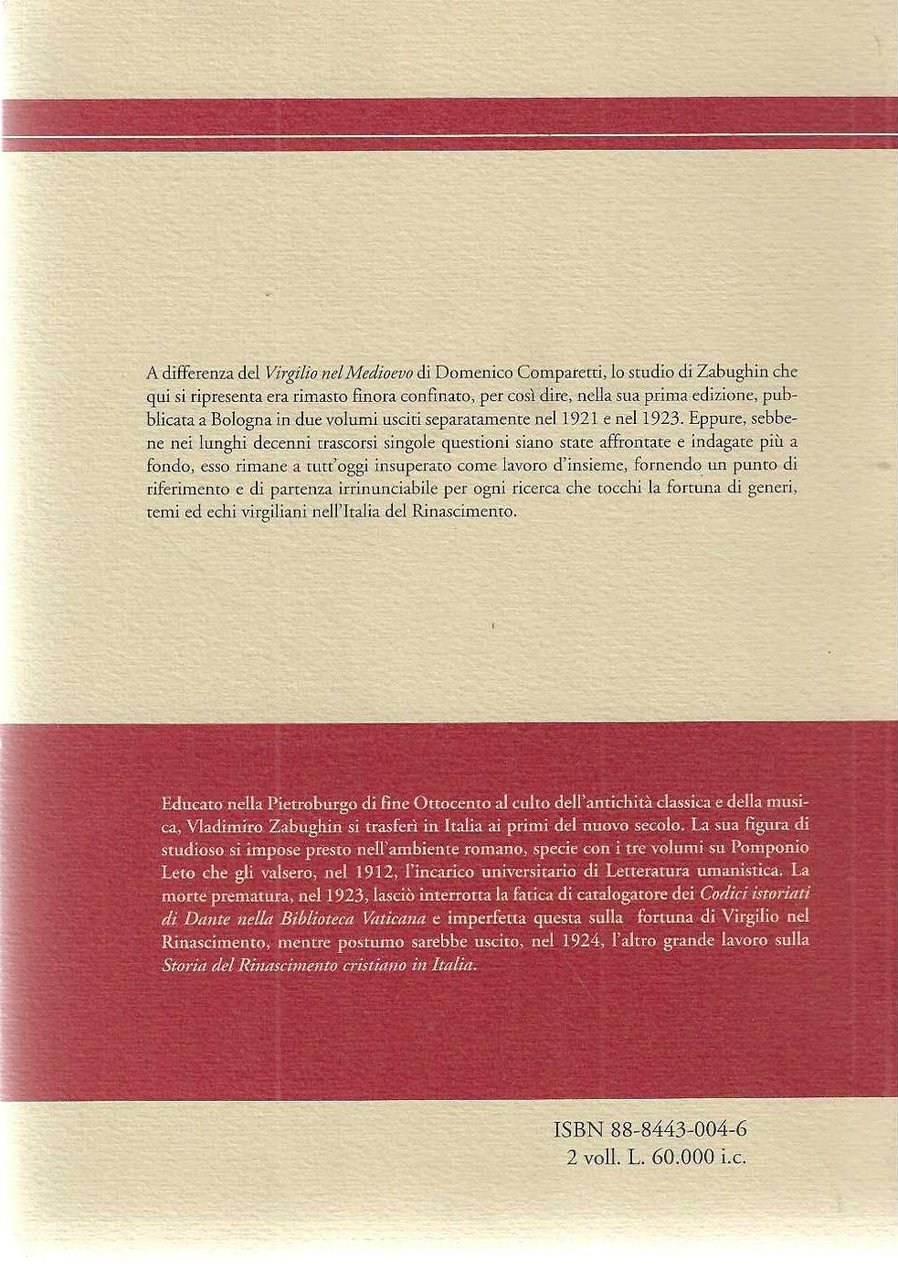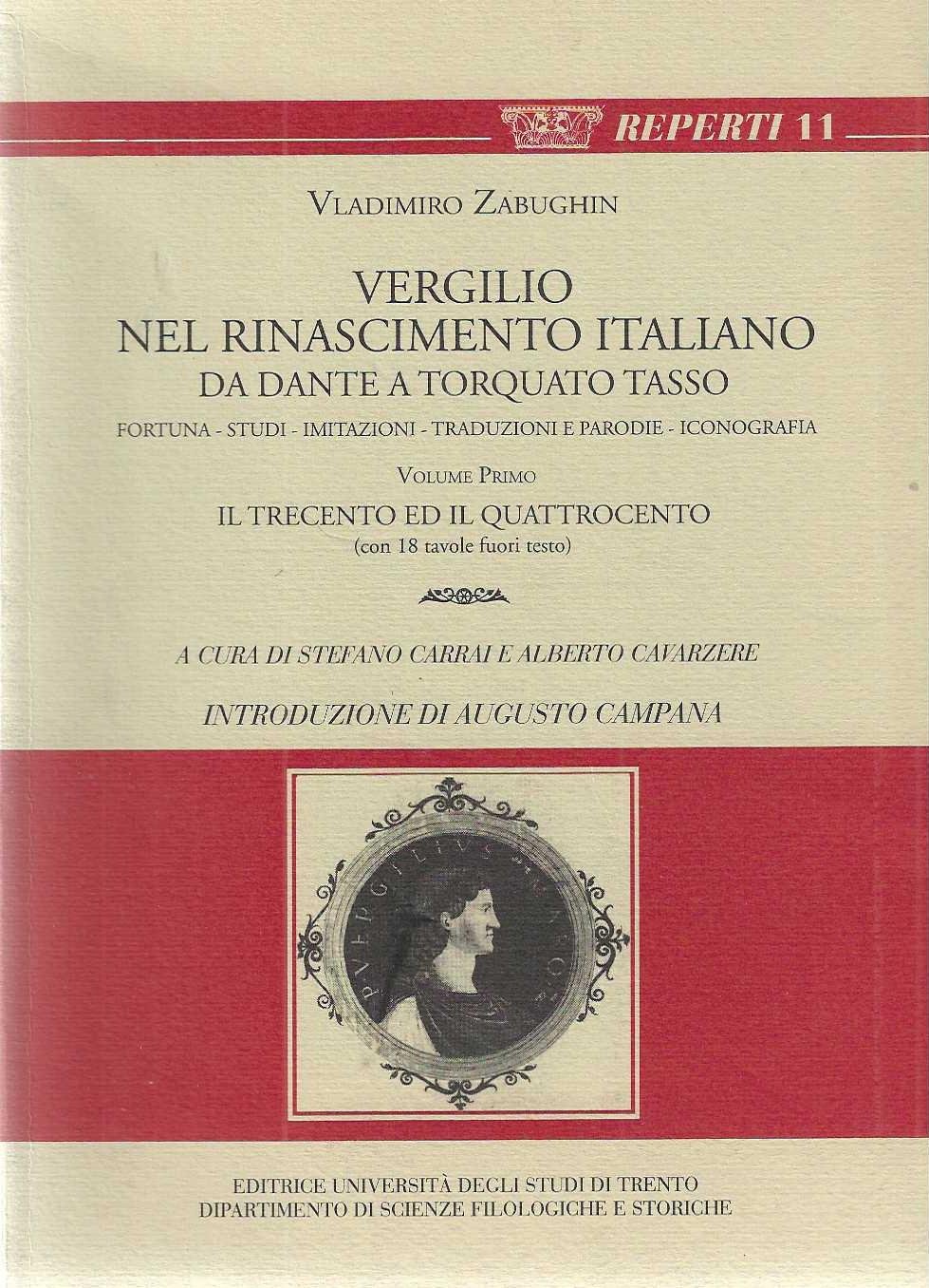"Vergilio nel Rinascimento italiano" "Da Dante a Tarquato Tasso" volume 1: "Il trecento ed il quattrocento" volume 2: "Il cinquecento"