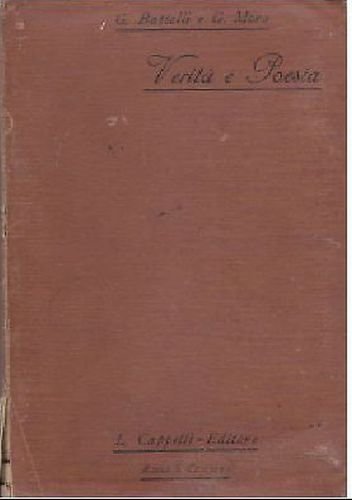 VERITÀ E POESIA di Guido Battelli Giovanni Moro libro di lettura per le scuole secondarie di primo grado. Licinio Cappelli editore, 1911. 452 pagine tavole monocromatiche fuori testo. Copertina in cartone editoriale telato. Dimensioni: 13,5 x 20,5 cm. Stato di conservazione: molto buono (pagine ingiallite, fioriture)