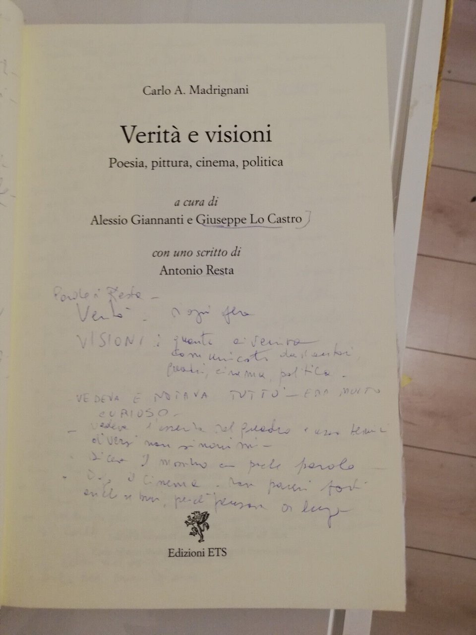 Verità e visioni. Poesia, pittura, Carlo A. Madrignani, 2013, Edizioni ETS, raro