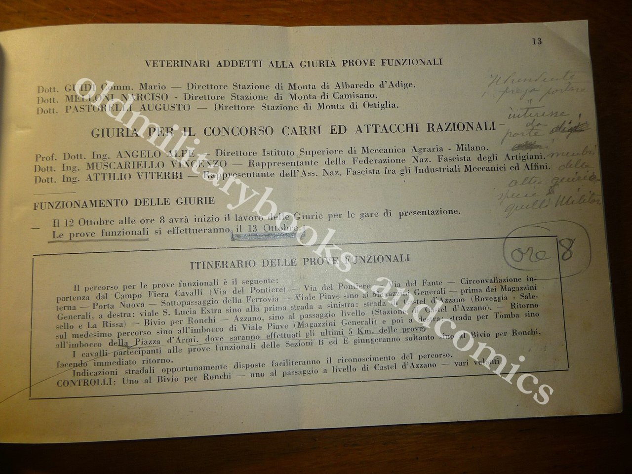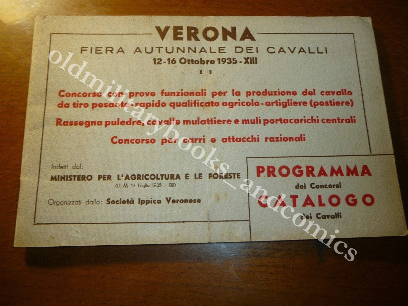 VERONA FIERA AUTUNNALE DEI CAVALLI 12-16 OTTOBRE 1935