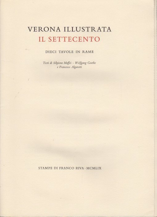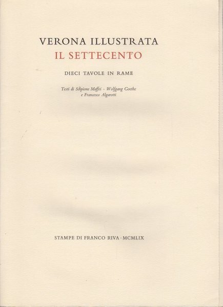 13 p., 36 cm, cart., custodia. Condizioni : USATO - Stato : Molto buono. Altre note : Da: Verona illustrata di S. Maffei, Viaggio in Italia di J. W. Goethe; Carteggio di F. Algarotti.