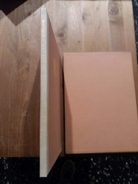 Legatura in cartone con dorso e angoli in pergamena, fogli sciolti, custodia, cm. 36 x 25,5.Stampato su carta a mano di Pescia in 370 esemplari numerati (n.46).