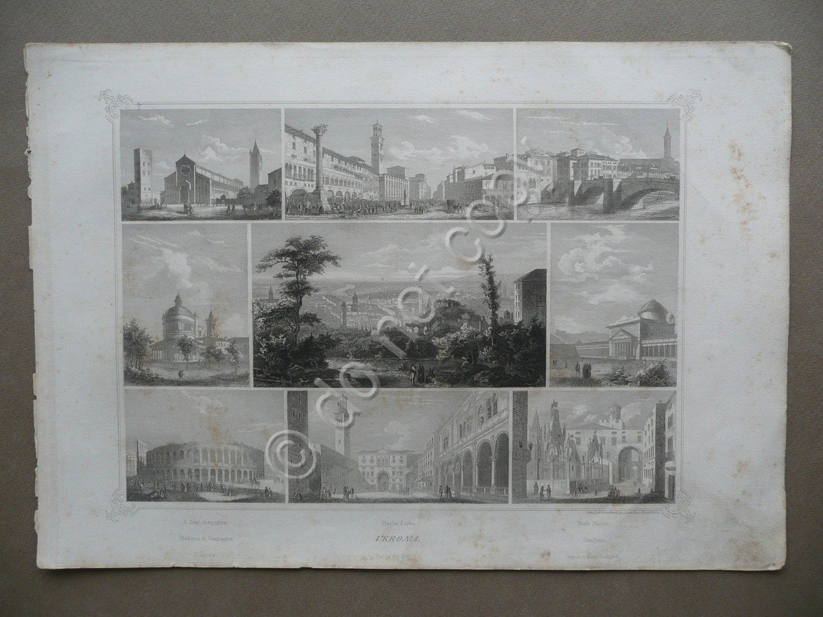Verona Vedute Multiple Incisioni Reschka Lloyd Austriaco Trieste Met‡ '800