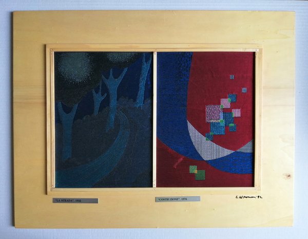 Opera originale in seta da disegni di Veronesi del 1932 e 1976. Formato opere 40x27,5. Formato pannello in legno 43,5X27,5. In ottimo stato