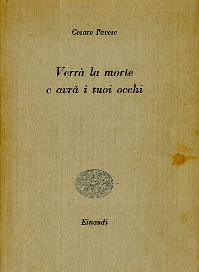 5. ed. 46 p. ; 22 x 16 cm. Le poesie di «Verrà la morte» non attingono alla vena epica di Lavorare stanca. Dall'oggettivazione narrativa fanno ritorno al soggettivismo lirico, ma trascendono l'antico limite della confessione e dello sfogo nella sottile sapienza d'un linguaggio poetico che si fa numero, immagine, valore musicale. Sono qui raccolte le poesie che Pavese ha scritto dopo «Lavorare stanca». Le poesie del primo gruppo, «La terra e la morte», scritte a Roma nel '45, sono state pubblicate nella rivista «Le Tre Venezie» nel '47. Le poesie del secondo gruppo, «Verrà la morte e avrà i tuoi occhi», sono state scritte a Torino nella primavera del '50: salvo «La casa», che è del settembre '40 e che non era rientrata nella raccolta «Lavorare stanca». Le poesie di questo secondo gruppo sono tutte inedite: sono state trovate, in duplice copia, fra le carte di Pavese dopo la sua morte, nell'ordine stesso in cui vengono presentate, e c'era anche (datata solo nella minuta) «La casa». Brossura editoriale, coperta in cartoncino flessibile di colore grigio con alette. All'interno è conservata la scheda bibliografica originale di promozione del libro edita dall'editore con una fotografia in b/n dell'autore. Codice libreria 3242.