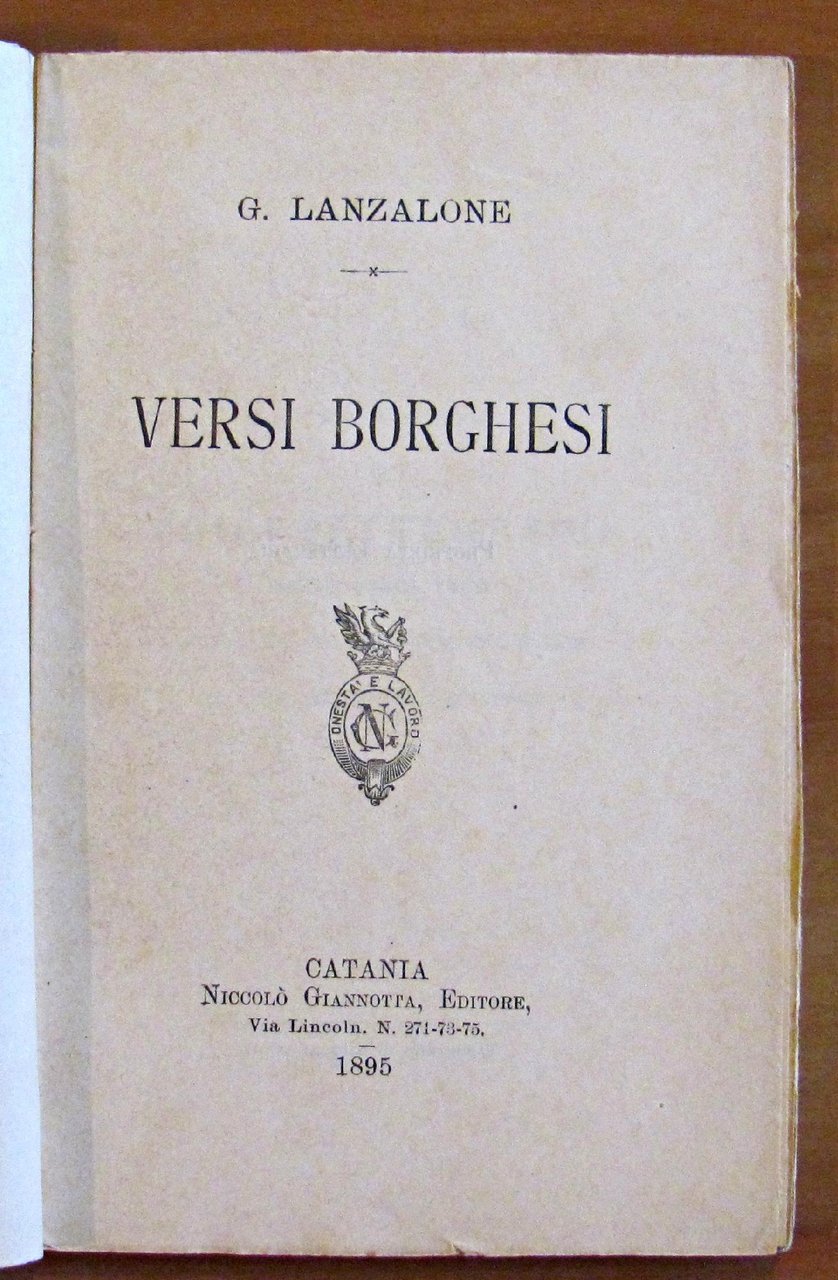 Ed. Giannotta - Catania, 1895. Brossura editoriale con piccola imperfezione alla cuffia superiore del dorso. 10x16; pp.90. RARO. OTTIMO STATO , Ottimo (Fine)