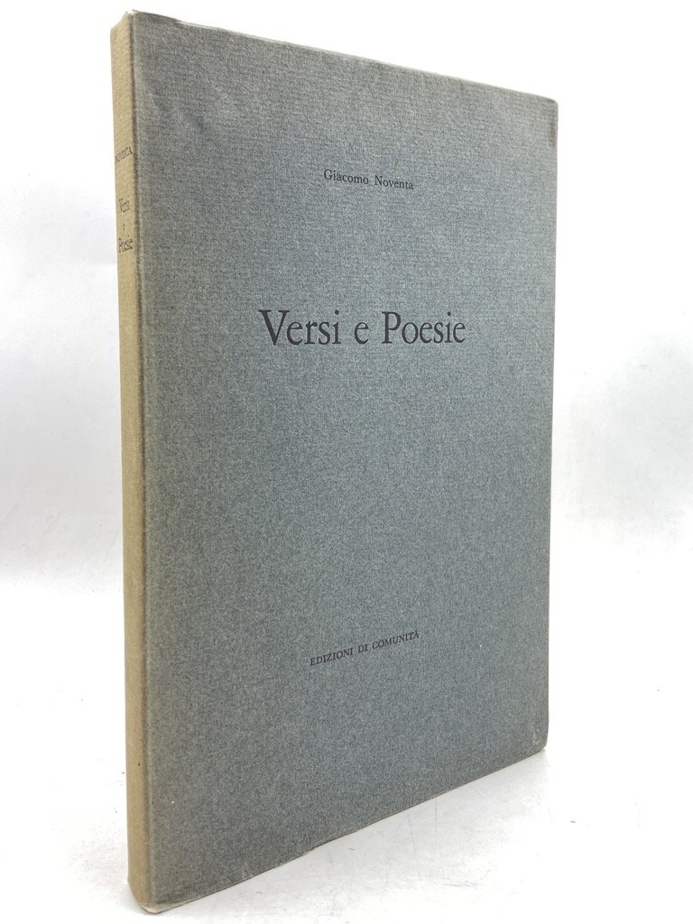 Brossura in camicia editoriale, cm 25 x 16, pp (2) XVI (2) 203 (1). Prefazione di Geno Pampaloni. Edizione originale di questa raccolta di versi di Giacomo Noventa, premio Viareggio 1956. Esordio poetico tardivo alla cui pubblicazione, voluta dall'amico Olivetti, l’autore acconsentì solo dopo il ritiro dalla vita politica. Gambetti Vezzosi, p. 598; Spaducci, p. 201.