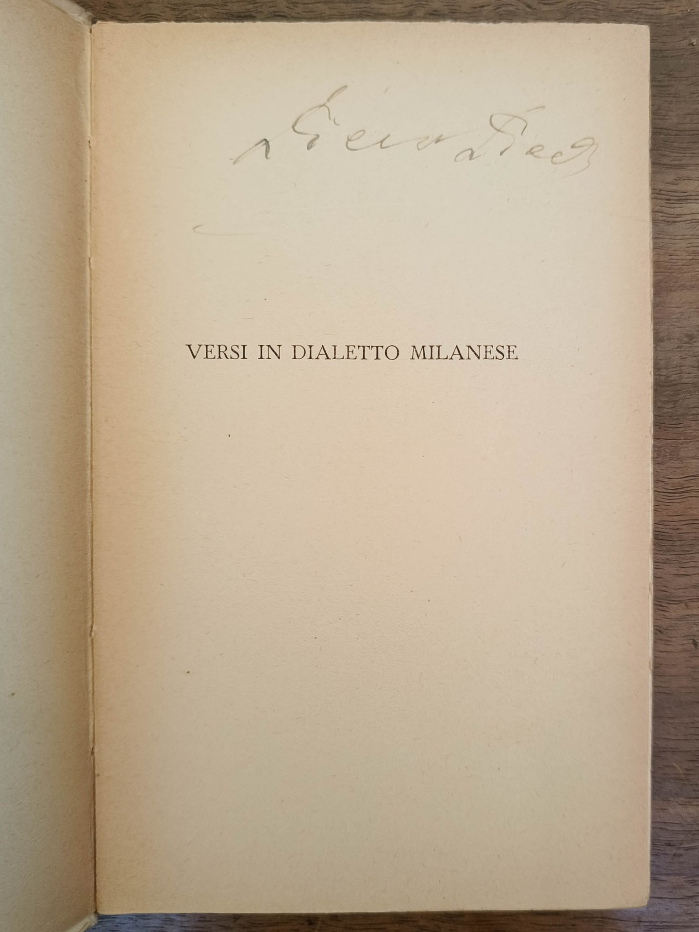 Versi in dialetto milanese, Milano, Mondadori, 1932. Cm 17,5. Pp. 130. Brossura editoriale. Lievi segni d'usura. Firma autografa dell'autore all'occhiello.