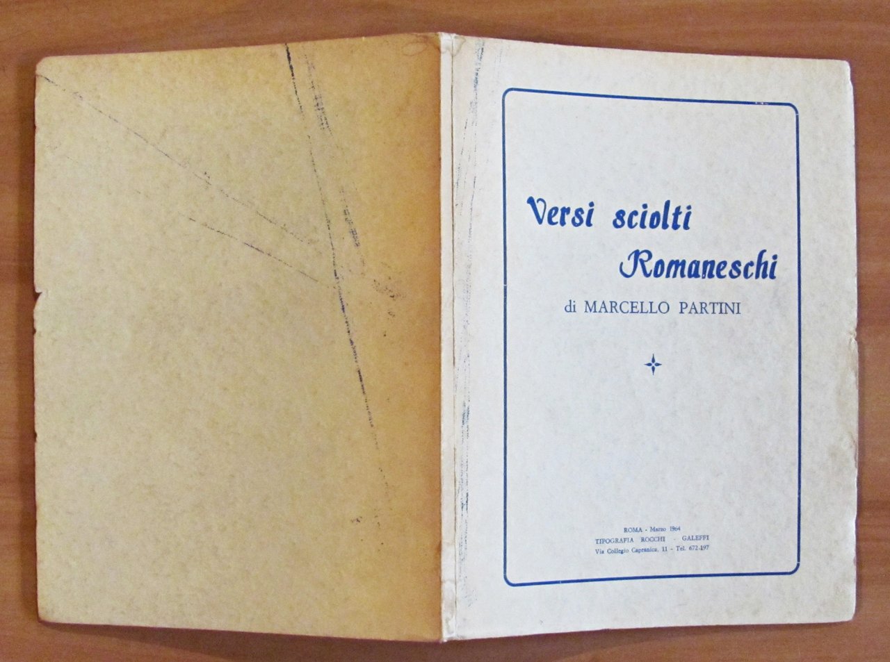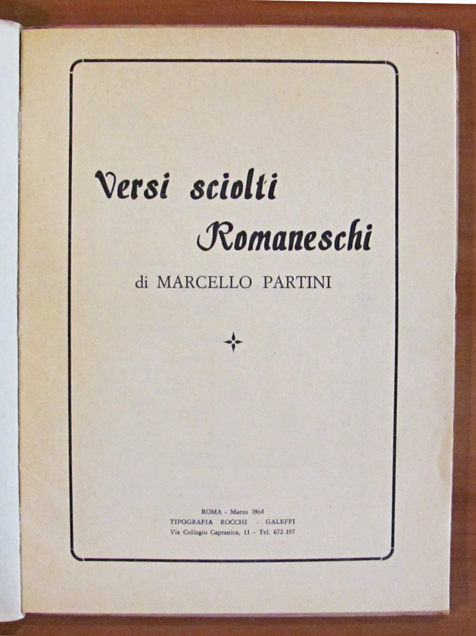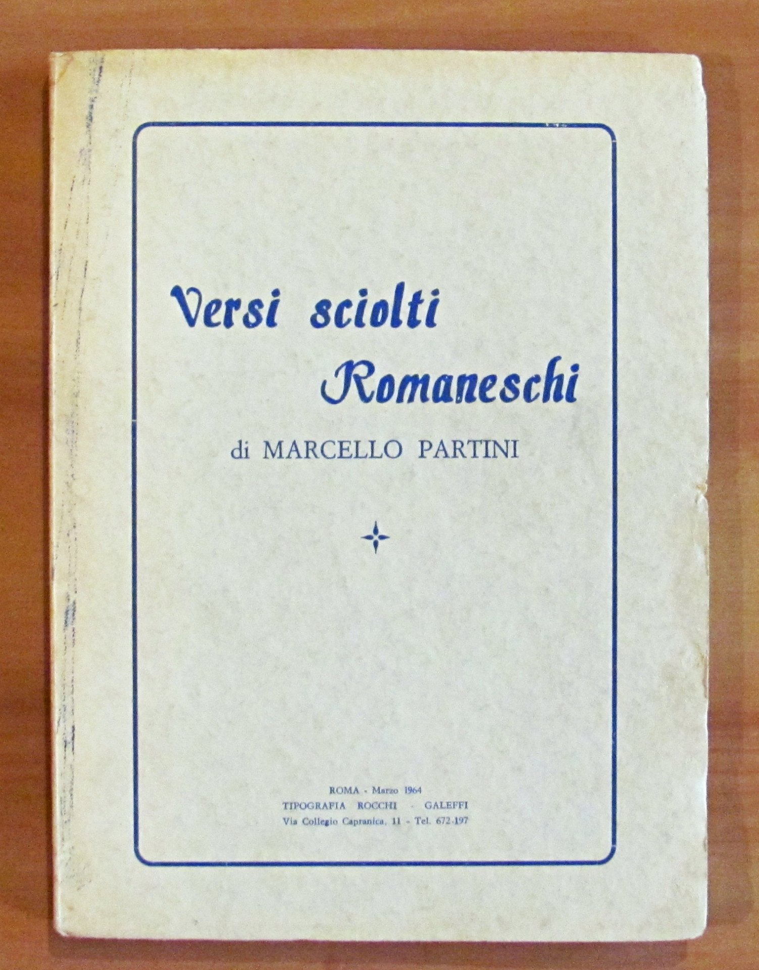Tipografia Rocchi Galeffi - Roma, 1964. Brossura editoriale con segni alla cerniera anteriore e in retrocopertina. Annotazione a penna al margine di un verso a pagina 17. Peraltro interno in Ottimo stato. 16x22; pp.43. Ottimo stato. , Molto buono (Very Good)