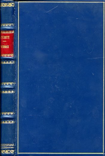 In-16° (185x111mm), pp. 252, legatura novecentesca in p. pelle blu con dorso a nervetti adorno di titolo in oro su tassello rosso e di fregi in oro entro scomparti. Sguardie marmorizzate. Frontespizio rifoderato, fioriture sparse e alcuni aloni d'umido alle ultime pp. Buon esemplare nel complesso. Assai rara edizione di Bastia impressa in forma anonima (la prima raccolta di Versi del Giusti uscì nel 1844 a Livorno) delle poesie del Giusti; 4 poesie figurano in prima edizione. Parenti, Rarità, II, 140: 'Rarissima'. Parenti, Bibliografia delle Opere di G. Giusti, 23: 'Prima ed assai rara edizione dei celebratissimi versi'.