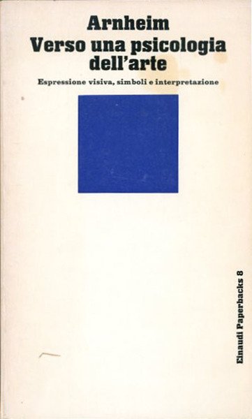 4. ed. 446 p. : ill. ; 21 x 12 cm. Einaudi paperbacks. Questo volume di Rudolf Arnheim, uno dei maggiori studiosi dei rapporti tra percezione visiva dell'arte figurativa e modello psicologico che la sostiene, è il risultato cui è approdata la ventennale ricerca di un indagatore d'eccenzione attorno ad alcuni temi specifici, quali l'astrazione percettiva, l'espressività attraverso la teoria della forma, il tentativo di descrivere quale simbolismo sia convogliato nella forma figurativa, che cosa deve intendersi per ispirazione. Titolo originale dell'opera: "Toward a psychology of art". Traduzione di Renato Pedio. Brossura editoriale, coperta in cartoncino flessibile colorato bianco/nero e blu. . Codice libreria 1357.