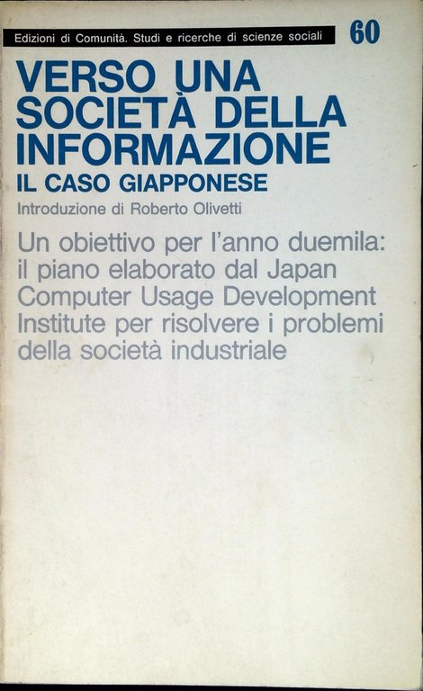 Japan computer usage development Institute ; introduzione di Roberto Olivetti Verso una societa dell'informazione : il caso giapponese. , Ed. di Comunità 1974, 23 158 p. (39683)