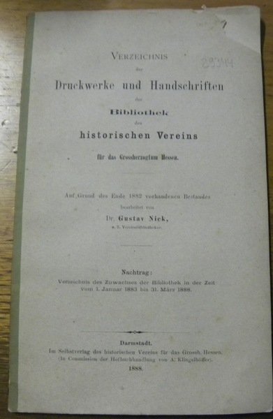 Verzeichnis der Druckwerke und Handschriften der Bibliothek des historischen Vereins für das Grossherzogtum Hessen.