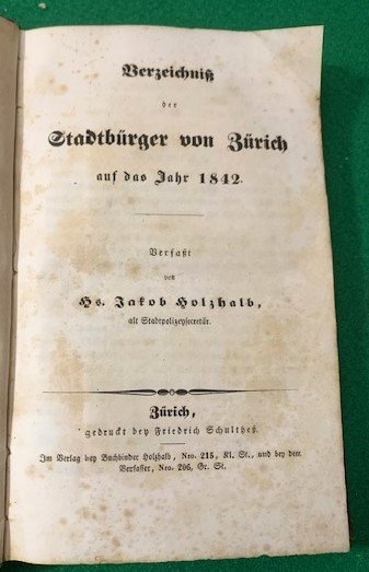 Verzeichnis der Stadtbürger von Zürich auf das Jahr 1842 verfasst von Jakob Holzhalb alt Stadttpolizeisekretär