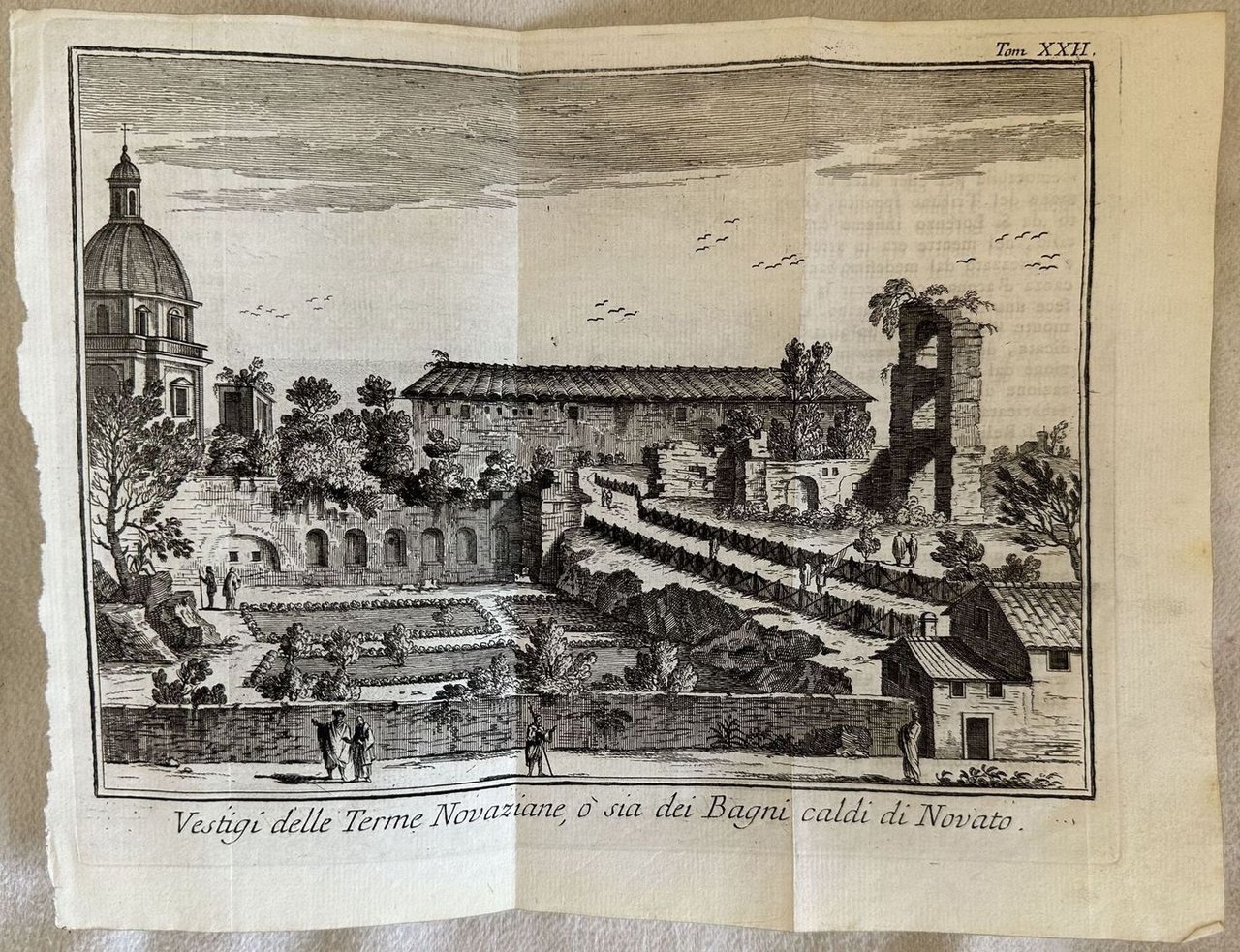 Veduta animata delle Terme Novaziane di Roma o di Novato. Atlante: Lo stato presente di tutti i popoli del mondo 1738-66 Autore: Thomas Salmon (1679-1767) Data: 1759 Tecnica: incisione su rame Dimensione del foglio: 237x184 mm Dimensione incisione: 205x166 cm Condizioni: Buone. Rare fioriture. PiegatureAn animated view of Terme Novaziane of Rome or of Novato. Atlas: Lo stato presente di tutti i popoli del mondo 1738-66 Autore: Thomas Salmon (1679-1767) Date: 1759 Technique: Copper etching Leaf Dimension:237X184 mm Engraving Dimension:205x166 cm Conditions: Good conditions. Occasional foxing. Foldings<BR><BR> <BR>