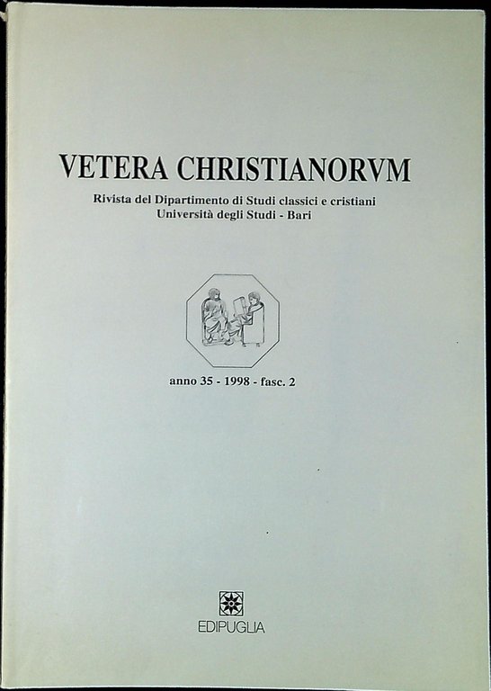 AA .VV. Vetera Christianorum Rivista del Dipartimento di Studi classici e cristiani Università degli Studi-Bari anno 44 2007 Fasc.1. Bari, Edipuglia 2007, 22 187 (49152)