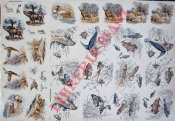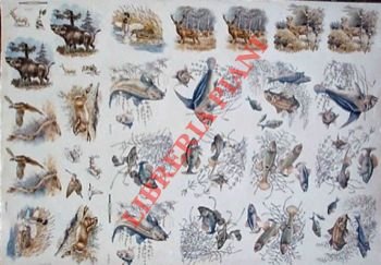 Firenze, Romer, cm 67 x 47 contenente 32 disegni di animali (Pesci d'acqua dolce e non; cervi; cinghiali; lepri; oche; fagiani; beccacce, ecc.) Curioso, interessante.