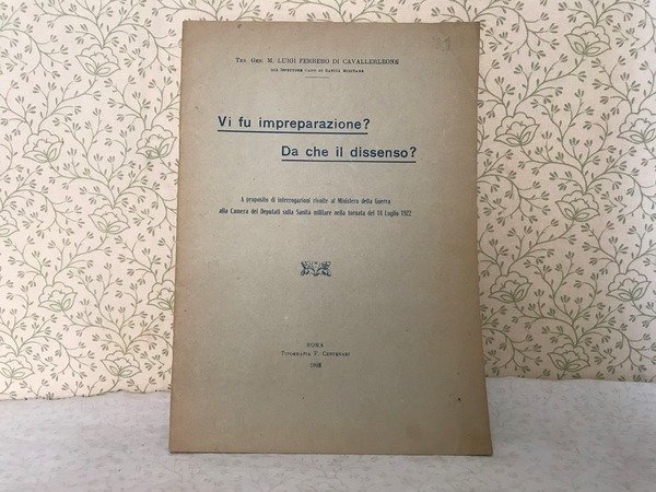 VI FU IMPREPARAZIONE? DA CHE IL DISSENSO? A proposito di interrogazioni rivolte al Ministero della Guerra alla Camera dei Deputati sulla SANITA' MILITARE nella tornata del 14 Luglio 1922