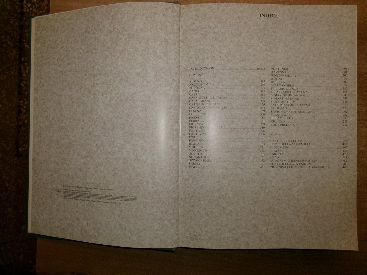 VIA EMILIA. Bologna, Edizioni Calderini, 1988. In-4° tela verde con titoli in oro. 542 pp. con innumerevoli illustrazioni fotografiche la maggior parte a colori n.t. + pagine di illustrazioni conclusive f.t. Ottimo stato con testo in italiano/francese/inglese. Neg. mob. 14 alto