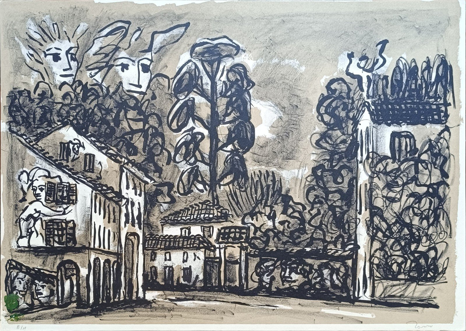 litografia cm. 70 x 49,8 Buono (Good) Buon es., foxing sul retro, macchia di colore verde in basso a sinistra..