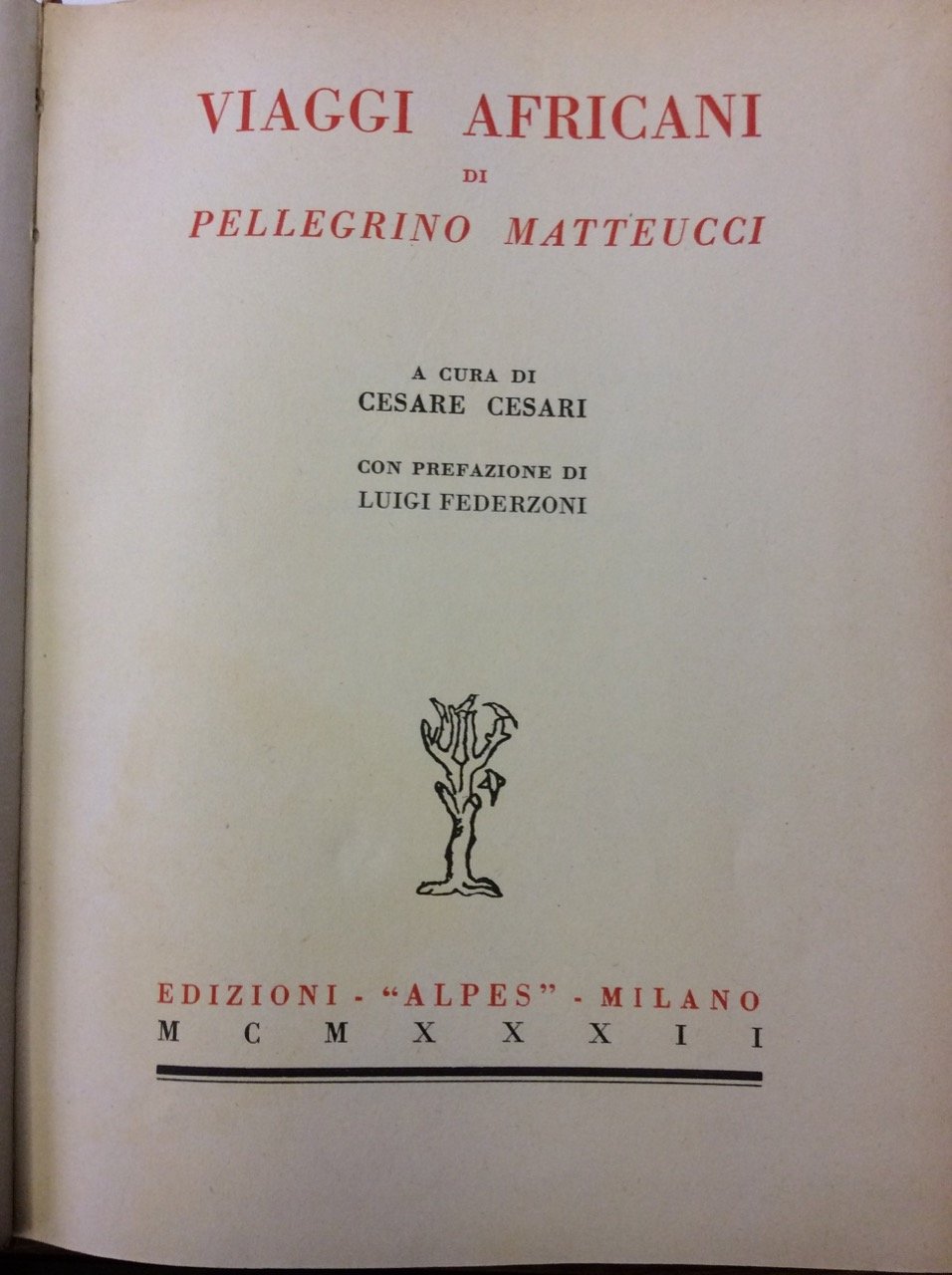 VIAGGI AFRICANI. - A cura di C. Cesari. Con prefazione di Luigi Federzoni.