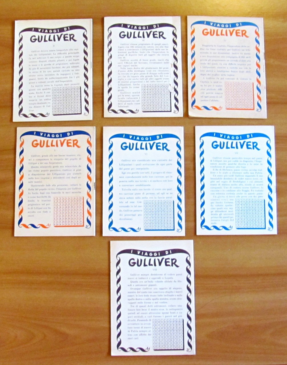VIAGGI DI GULLIVER - Lotto di 7 quaderni per la scuola elementare da N. II a VIII