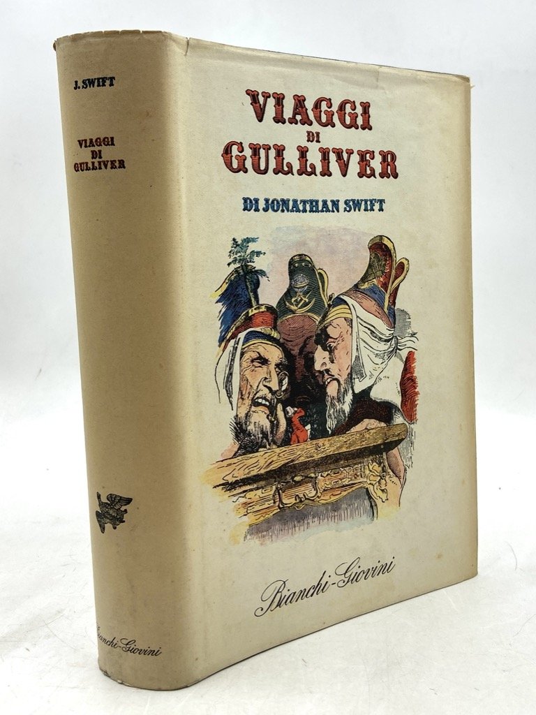 Tela editoriale con sovraccoperta illustrata, cm 22 x 14.5, pp XXII 450 (2), numerose illustrazioni in nero. Collana Aretusa, Narrativa Classica Italiana e Straniera. Buono stato. Prima edizione, stampata in 499 esemplari dalla Stamperia Capriolo e Massimino di Milano il 10 settembre 1945, della traduzione che Ugo Dettore curò per la casa editrice diretta con la moglie Bianca Ugo. Prefazione del traduttore, illustrazioni di Grandville. Ugo Dettore (1910-1992), scrittore e traduttore, collaborò con Bompiani presso cui concepì il progetto del grande Dizionario letterario e in quella sede conobbe la moglie Bianca Ugo (1910-1982), traduttrice dal tedesco e l'inglese molto attiva negli anni '30 per Corticelli, Corbaccio, Mondadori, Elettra e lo stesso Bompiani. Sposati nel 1938 Dettore e Ugo fondarono nel 1942 una propria casa editrice intitolandola ad Aurelio Bianchi-Giovini, pubblicista anticlericale dell'Ottocento e nonno di Dettore. La Casa Editrice Bianchi-Giovini fu improntata al recupero di classici e alla traduzione di letterature straniere, patendo non pochi fastidi da parte del regime che spesso non concesse i nulla osta di pubblicazione e addirittura ordinò il sequestro e macero del Satyricon pubblicato nel 1943. La coppia si avvalse peraltro della collaborazione di intellettuali antifascisti quali Ada Prospero Gobetti e Massimo Mila, e nel 1944 fu brevemente incarcerata dai tedeschi a San Vittore. L'ambizioso progetto della Bianchi-Giovini partì con due collane di Saggistica letteraria («Europa») e letteratura («Aretusa»), e con l'Enciclopedia della Donna curata da Bianca Ugo; oltre a Dettore e Ugo, e ai succitati Prospero e Mila, tra i collaboratori della casa editrice ricordiamo Carlo Cordié, Mario Praz, Carlo Bo, Salvatore Fiume. L'ambizioso progetto editoriale, nonostante la pubblicazione nel dopoguerra di molti dei titoli bloccati dal regime, rimase largamente incompiuto e nella collezione Aretusa videro la luce solo 15 delle 150 opere previste. La separazione della coppia e le difficoltà economiche rallentarono molto i lavori; negli anni '50 Ugo Dettore iniziò a collaborare con Garzanti e la casa editrice Bianchi-Giovini, ormai proprietà della sola Bianca Ugo, languì fino a chiudere i battenti nel 1958. La curatissima collezione Aretusa resta una preziosa testimonianza di una delle più interessanti avventure editoriali italiane del '900.