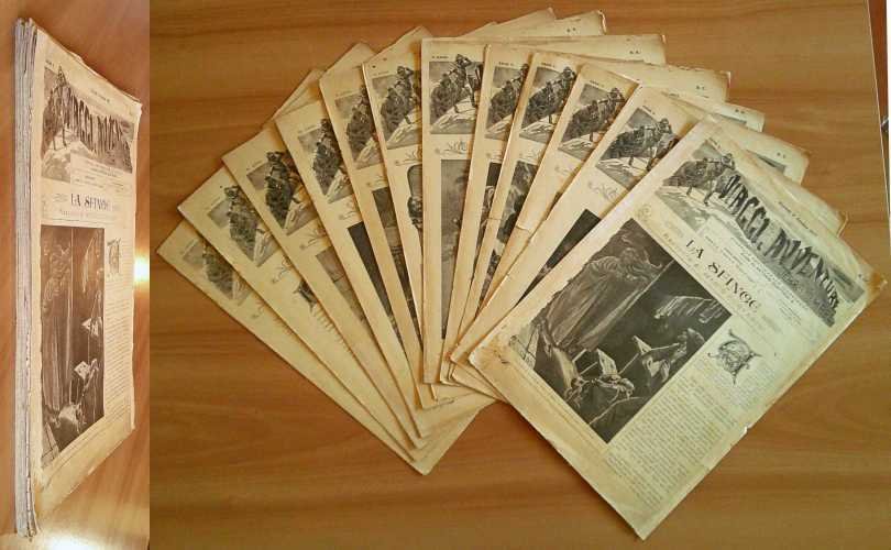 Lotto di 12 Fascicoli dal N.1 al N.14 (mancano il N.2 e il N.3). Illustrazioni in b/n alle copertine e n.t. Società Editrice Roma - Como, 1907/08. Brossure editoriali con minime tracce del tempo e qualche dorsetto consolidato. Lievissime barbe ai margini esterni di qualche fascicolo. Al fascicolo N.12 sono state restaurati i margini esterni. Al fascicolo N.13 c'è una traccia di vecchia gora passante in basso alle pagine e restauro dell'ultima pagina (come da foto). 25x35; pag. con numerazione consecutiva 1/112. Rari e in Buonissimo stato. , Molto buono (Very Good)