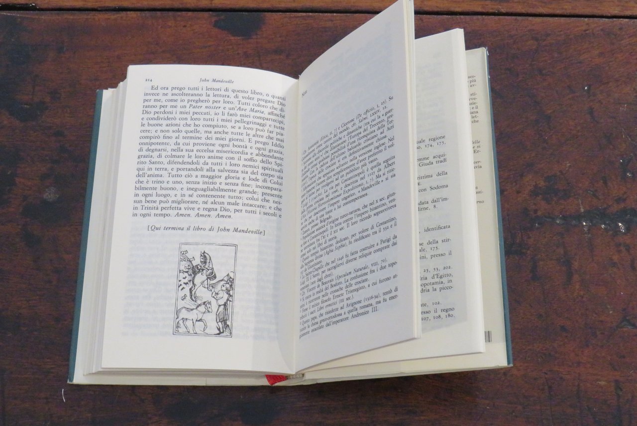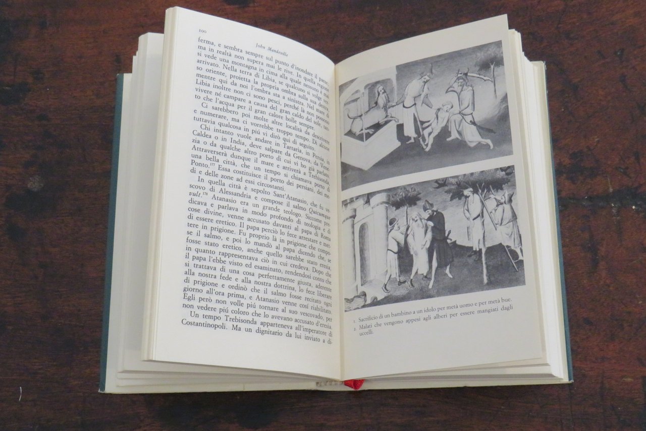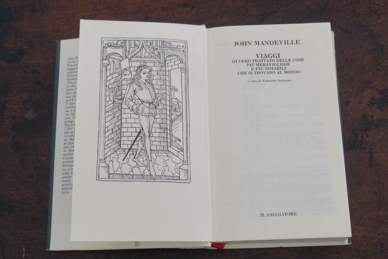 Milano, Il Saggiatore, 1982. In -8 (mm. 120x190,5), pp. XI-XLIV, 254, con 8 illustrazioni (riproduzioni di miniature) in nero e numerose riproduzioni di xilografie fuori testo, di cui una all’antiporta. Legatura editoriale muta in cartone, con titoli impressi al dorso. Con sovraccoperta illustrata al piatto anteriore. A cura di Ermanno Barisone. Introduzione di Ermanno Barisone. Titolo originale: "The travels of Sir John Mandeville". TERRE/IDEE 1 Collezione diretta da Franco Marenco. Prima edizione. Lieve strappo all’angolo superiore sinistro del dorso, ma nell’insieme ottimo.