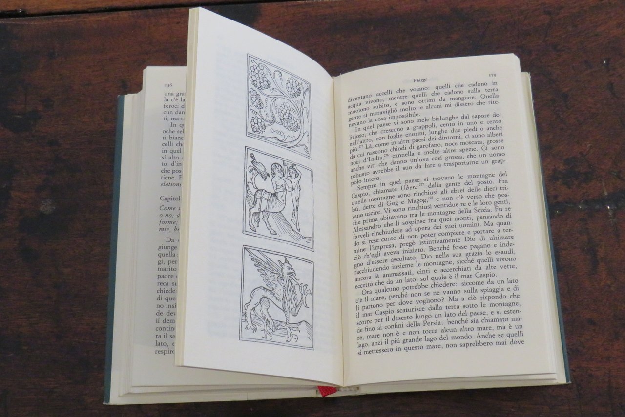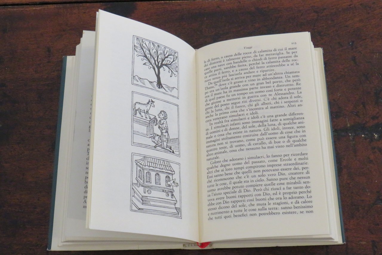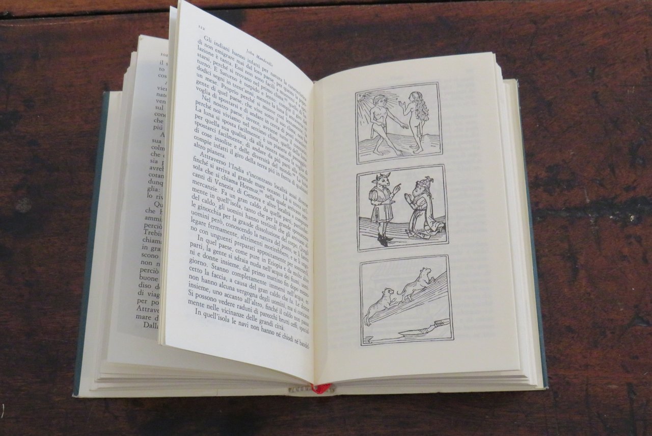 Milano, Il Saggiatore, 1982. In -8 (mm. 120x190,5), pp. XI-XLIV, 254, con 8 illustrazioni (riproduzioni di miniature) in nero e numerose riproduzioni di xilografie fuori testo, di cui una all’antiporta. Legatura editoriale muta in cartone, con titoli impressi al dorso. Con sovraccoperta illustrata al piatto anteriore. A cura di Ermanno Barisone. Introduzione di Ermanno Barisone. Titolo originale: "The travels of Sir John Mandeville". TERRE/IDEE 1 Collezione diretta da Franco Marenco. Prima edizione. Lieve strappo all’angolo superiore sinistro del dorso, ma nell’insieme ottimo.